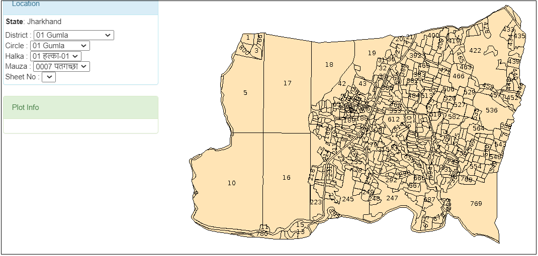 जैसे ही भू नक्शा पोर्टल खोलने पर छोटे-छोटे भूखंड पर नंबर दिखाई देता है। समान्यतः ये ज़मीन का प्लॉट नंबर को दर्शाता है।