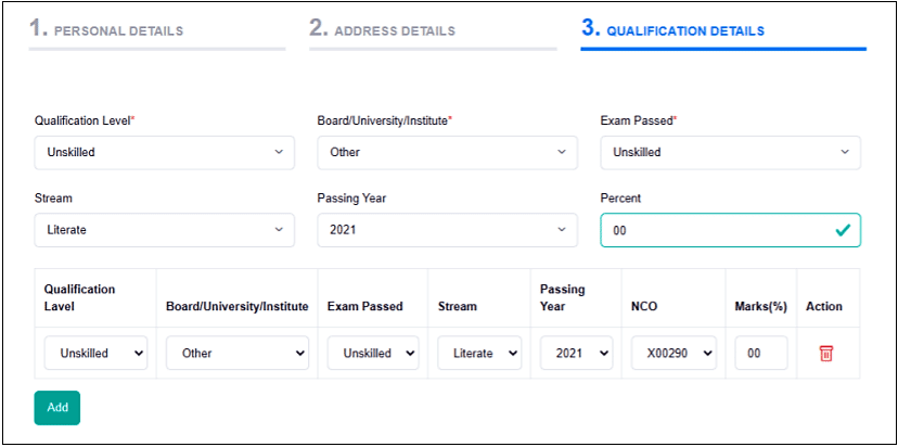 - यदि आवेदक के पास अन्य Extra Qualification है, तो “Add” पर क्लिक करके Add कर लें।